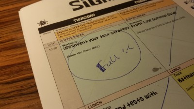 Knowing I’m a master of procrastination I laid out a time plan for completing the slides well in advance of the deadline. One challenge was the time constraint for the actual talk, 25 minutes including Q&A. My plan was to address testing in the DevOps tool chain, how we applied our version of Googles Test Certified model and ideas on building cross functional teams which meant that I had to boil down three ~30 minutes presentation into one 20+ minutes talk. Cutting out samples, quotes, funny references, slides covering buzz words et.c. I had a set that ought to work. I did quite a few dry runs with that slide set and I felt it was working fine. Average time for the dry runs was a few seconds shy of 20 minutes.